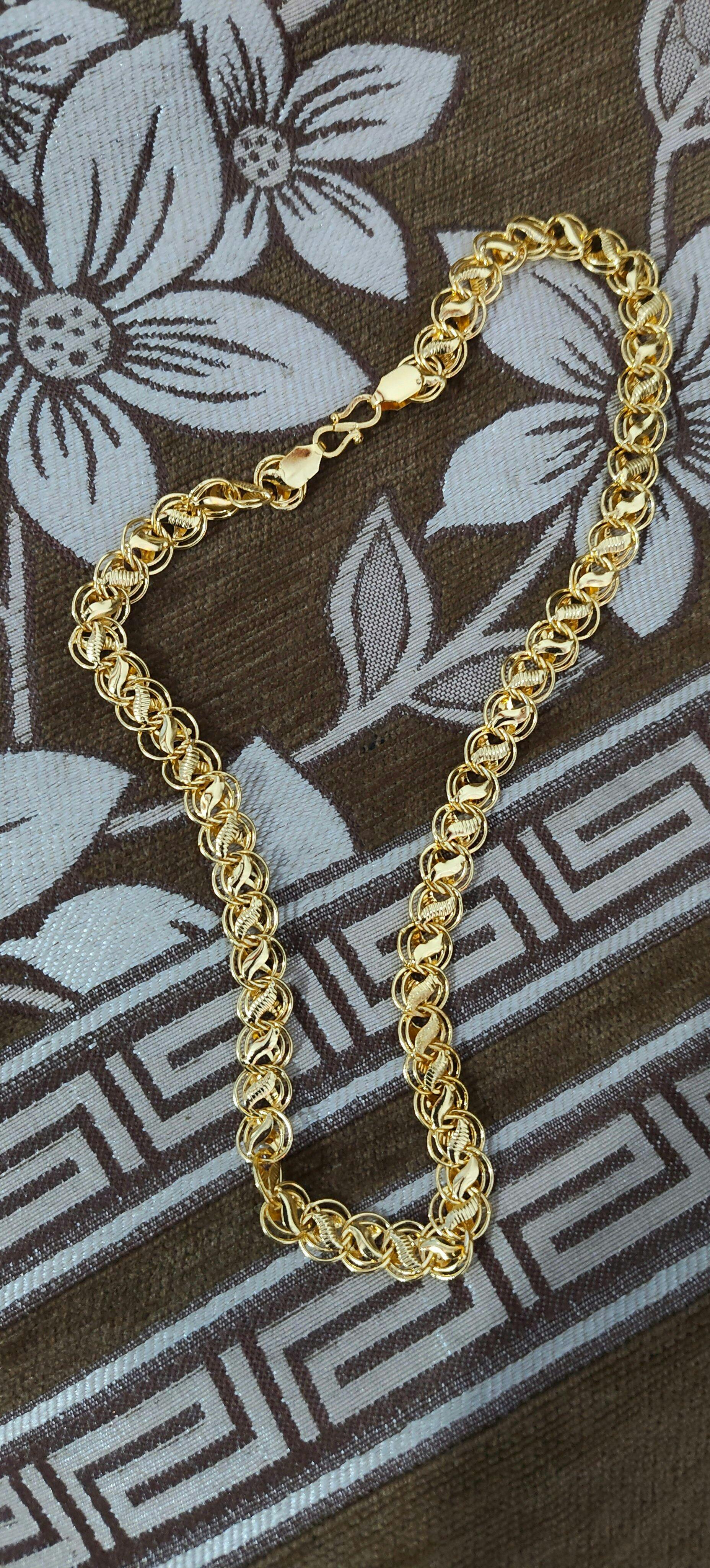 ✨PremiumGoldPlating–Madewithhigh-qualityalloyandfinishedwithdurablegoldplatingforarich,long-lastingshine.✨StylishRopeDesign–Atimelessrope-stylechainthatnevergoesoutoftrend,suitablefordailywearorspecialoccasions.✨ComfortableSize(L)–Lightweight,smoothontheskin,andeasytopairwithanyoutfit.✨PerfectforGifting–Comesasasinglepiece(Packof1),makingitagreatgiftforbirthdays,anniversaries,orfestiveoccasions.✨MadeinIndia–ProudlycraftedinIndiawithattentiontodetailandquality.